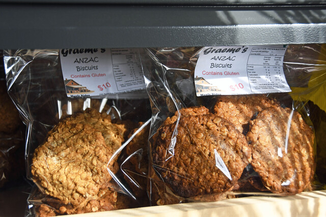 He sells Anzac biscuits all year round, they simply sell too fast to keep them seasonal, and he uses his grandmother’s century-old recipe for the popular fruit cake selection.