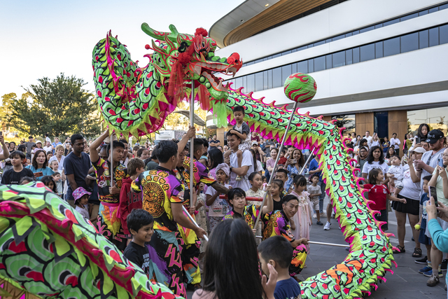 Bunjil Place was lit up on Saturday night as crowds gathered for the Year of the Horse celebration featuring dragon and lion dances alongside live music.