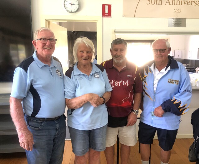 Runners up were the team of Bill Sherriff(S), Margaret McConville (L), Max Summers (3) and Robert Benson (2) on 36 points, while best one game winners were Mick Sheers (S), Alison Devine (L), Helen Blake (3) and Derek Fenn (2) with 19 points.